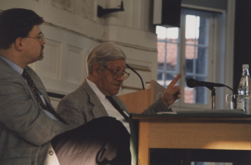 On 7 May 1997, at the invitation of the IFSH and the Association for the Promotion of the Institute for Peace Research (VFIF), former Federal Chancellor Helmut Schmidt spoke at the University of Hamburg on the topic of "Globalisation and its effects on the economy and democracy".