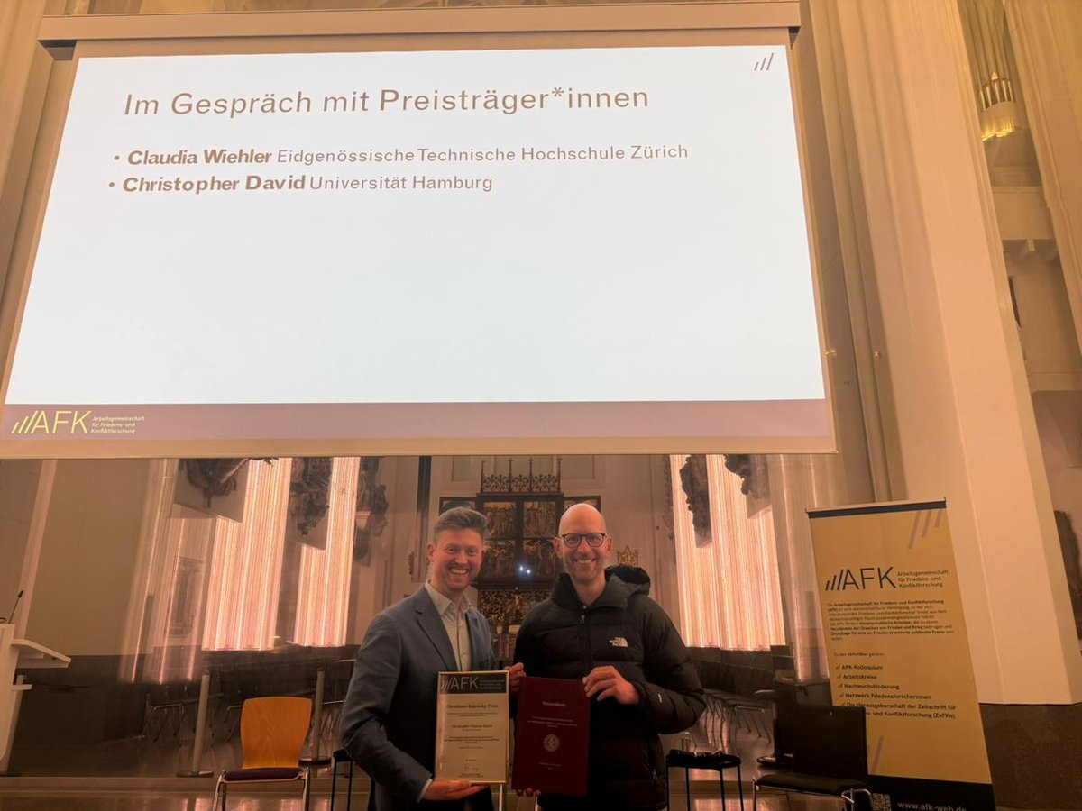 On 11 March 2026, at the annual colloquium of the German Association for Peace and Conflict Research (AFK) in Leipzig, Christopher David received the Christiane Rajewsky Award for the best master’s thesis of the year in the field of peace and conflict research in the German-speaking world.
