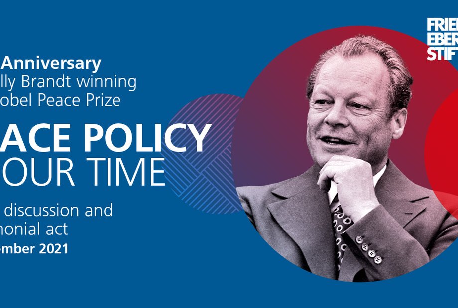 From 14:00-20:30 on 8 December 2021, 50 years after Willy Brandt was awarded the Nobel Peace Prize, the Friedrich-Ebert-Stiftung in cooperation with the Bundeskanzler-Willy-Brandt-Stiftung invites to a panel discussion and ceremonial act.