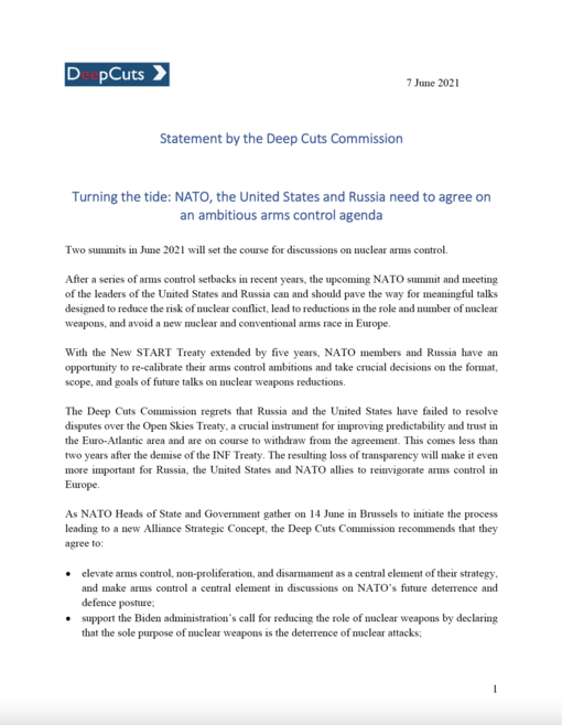 Die Deep-Cuts-Kommission wurde 2013 gegründet und wird vom IFSH koordiniert. Projektpartner ist die unabhängige Arms Control Association in Washington, D.C.