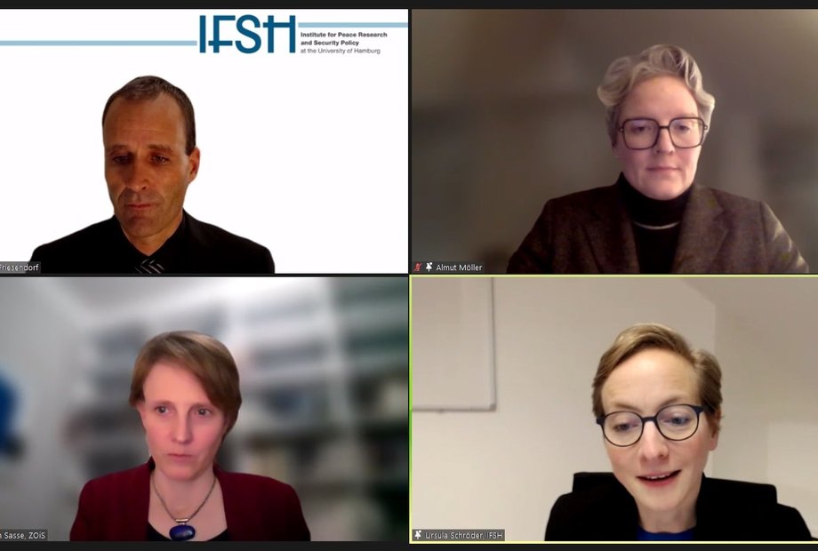 An der anschließenden Paneldiskussion unter der Moderation von Dr. habil. Cornelius Friesendorf, dem Leiter des OSZE-Forschungszentrums CORE am IFSH, nahm neben Almut Möller und Ursula Schröder auch Prof. Dr. Gwendolyn Sasse teil, die als Wissenschaftliche Direktorin das Zentrum für Osteuropa und internationale Studien (ZOiS) leitet. Die Expertinnen diskutierten, wie ein zeitgemäßer Ansatz für kooperative Sicherheit in Europa aussehen müsste und welche Rolle Europa bei der Sicherung des Friedens übernehmen könne.