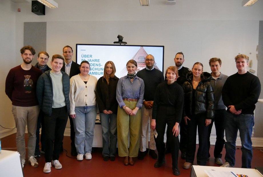 Am 25. Februar besuchte die Hamburger Hochschulgruppe der Konrad-Adenauer-Stiftung das IFSH, um die Zukunft europäischer Sicherheit zu diskutieren. Dr. habil. Cornelius Friesendorf, Leiter des Zentrums für OSZE-Forschung am IFSH, skizzierte Gründe, warum europäische Staaten trotz der akuten Bedrohung durch Russland und der Großmachtpolitik der USA kaum damit vorankommen, ihre Verteidigung gemeinsam zu organisieren. Oberstleutnant i.G. Thilo Geiger, Wissenschaftlicher Mitarbeiter am IFSH, erläuterte die militärische Lage in der Ukraine und die Lücken in der europäischen Verteidigung.